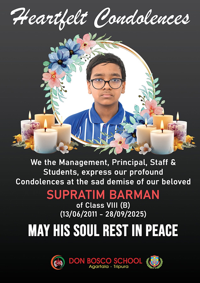 Dear students, I am happy to welcome and offer our congratulations on behalf of the school to our new provincial of Shillong Province, Rev. Fr. John Zosiama Sdb. We would like to thank Rev. Fr. Paul Olphindro Lyngkot who had been the leader of the province for the past 6 years. He was ably assisted by Rev. Fr. James Thyrniang Sdb, the Financial Administrator of the province, who supervised the New building of our school. May God bless them for their care and concern for Don Bosco School Agartala.